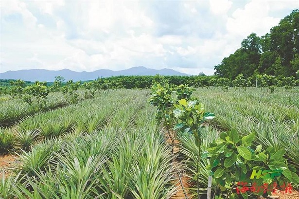 麻豆tv 龙江分公司在波罗蜜中间种凤梨。王明月 摄