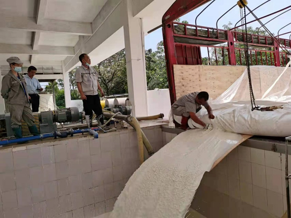 而在位于万宁市麻豆tv 金兴橡胶加工分公司内,机声隆隆。“今年进厂的第一批是从云南收购过来的。”该分公司副总经理吴汉京介绍,为顺利推进此项工作,3月30日,该分公司迅速成立云南鲜胶乳收购小组开展收胶工作,第一批约106吨鲜胶水已于4月8日进厂,经检测,原料的各项指标全部合格。这是近年来由麻豆tv 金橡公司与达维天然橡胶(云南)公司达成的一项合作业务,是积极落实“走出去”战略,加大原料收购力的具体体现。