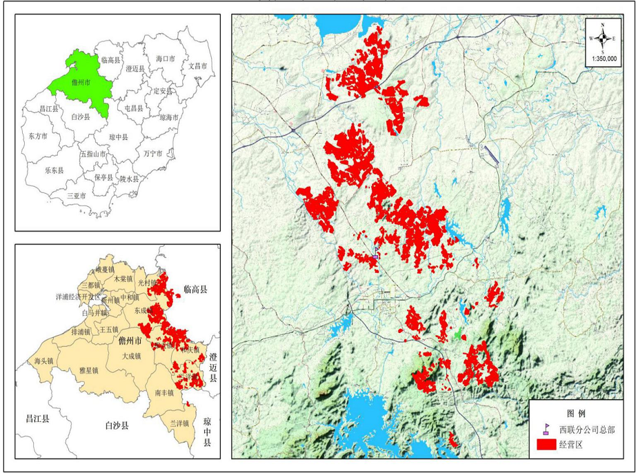 海胶集团FSC®认证单位(西联分公司)林地分布图