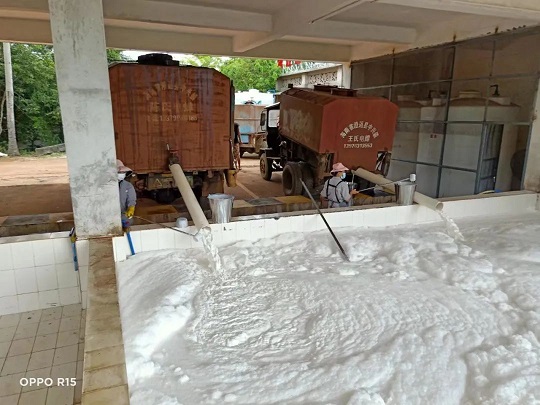 疫情期间胶水运输极为不畅,很多基地分公司胶水搁置多天。对于这些胶水,金橡公司积极对接基地分公司和民营胶客户,指导原料保鲜工作,提供保鲜剂,区域外的通过电话、微信方式指导原料保鲜工作。胶水原料拉到加工分公司后再进一步做特殊工艺保鲜及加工生产,保质保量完成因疫情影响不能及时运输的原料加工工作。