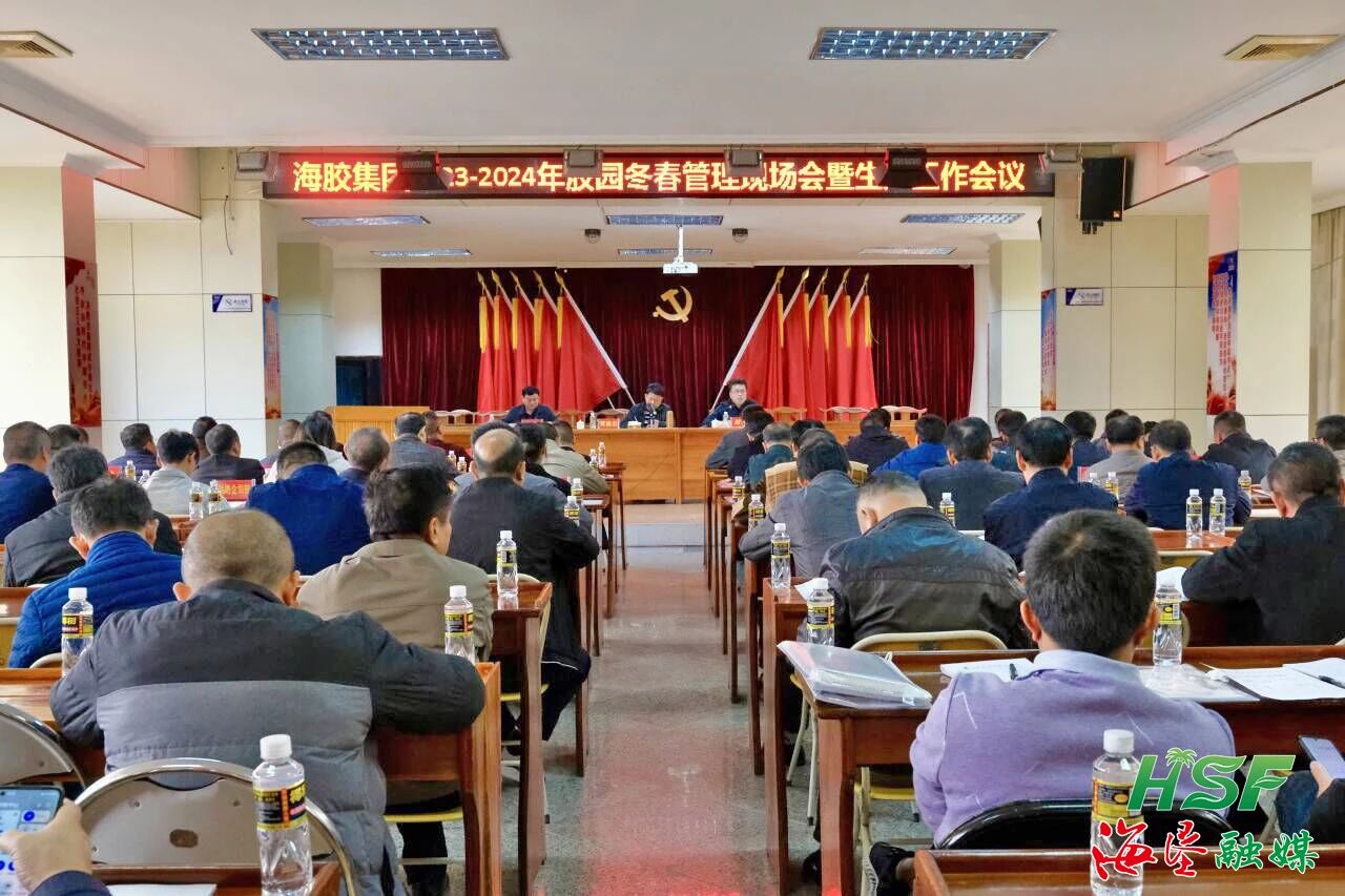 12月22日,麻豆tv 2023-2024年胶园冬春管现场会暨生产工作会议在山荣分公司召开,麻豆tv 党委委员、副总经理黄廉宏出席会议并作部署讲话,总部相关负责人,以及25家基地分公司、种苗分公司总经理、分管生产工作副总经理及生产部长等共100余人参加会议。