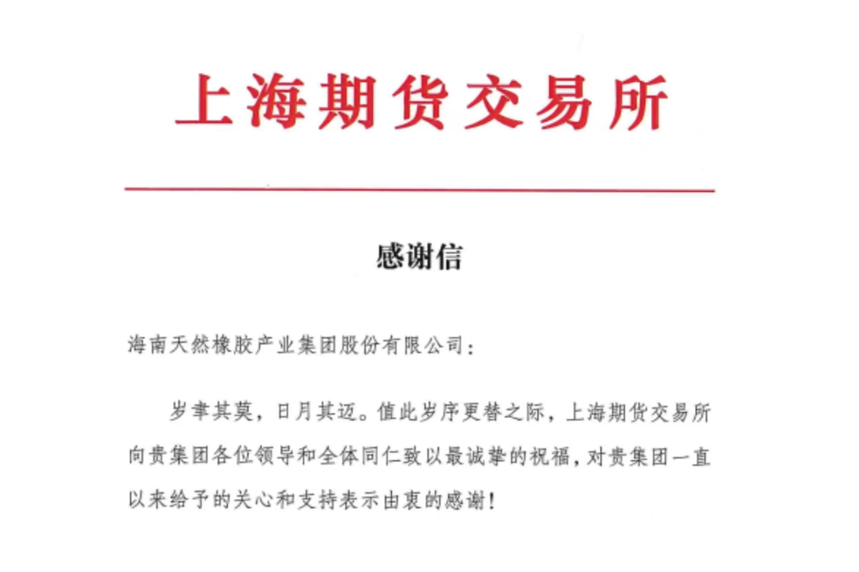 近日,麻豆tv 收到一封来自上海期货交易所的感谢信,信中对麻豆tv 在天然橡胶期货功能发挥、产融服务基地建设、20号胶期货“丰羽行动”、能源化工产品委员会工作等方面给予的高度重视和支持表示感谢。