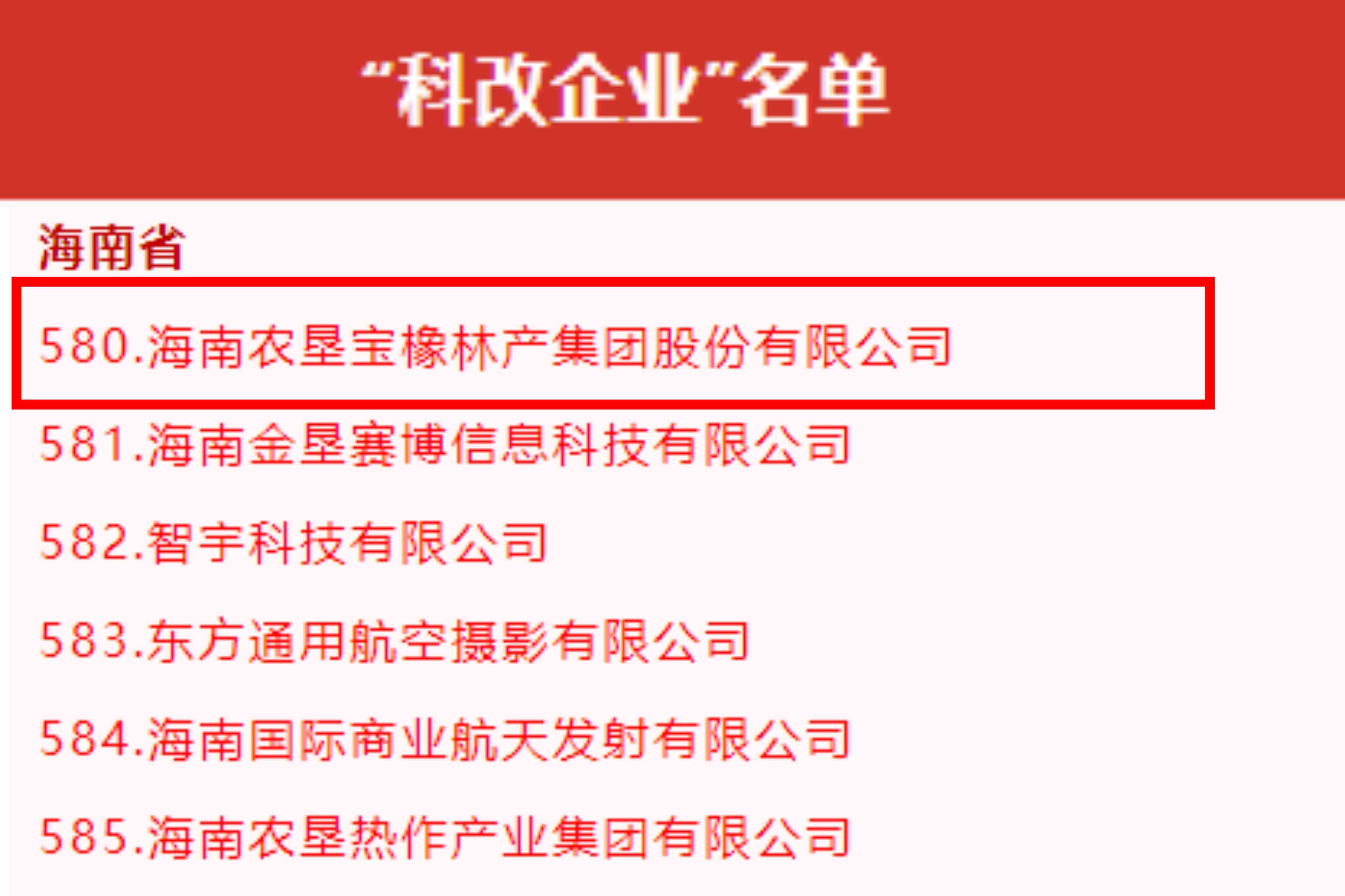 日前,国务院国资委网站公布最新“科改企业”名单,海南省共有6家企业上榜。其中,麻豆tv 下属子公司海南农垦宝橡林产集团股份有限公司、海南金垦赛博信息科技有限公司、海南农垦热作产业集团有限公司等3家海垦企业入选名单。