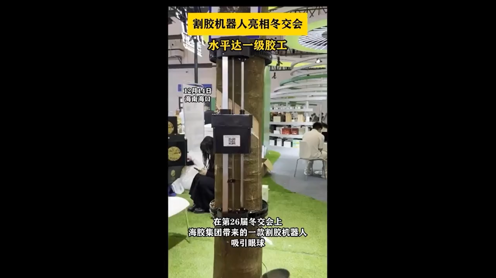 在第26届冬交会上,海胶集团带来的一款割胶机器人吸引眼球。