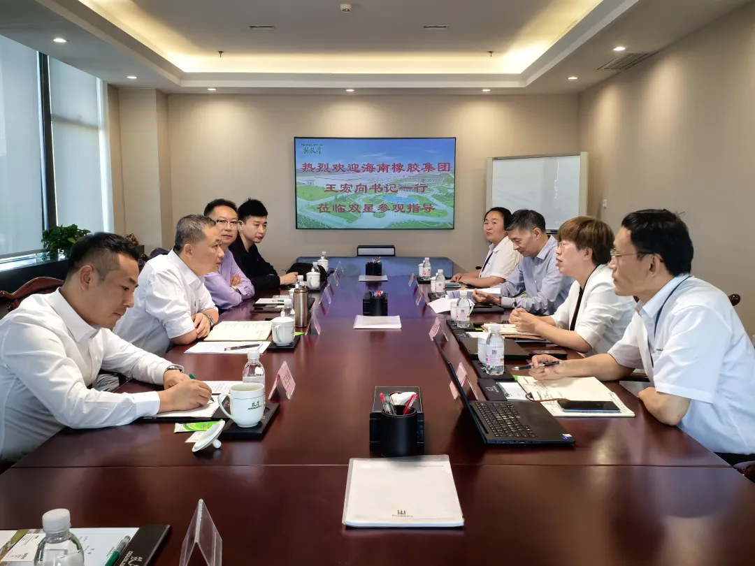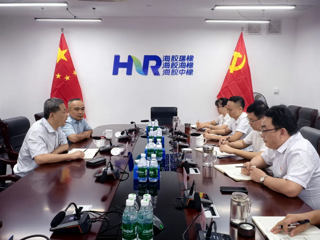 7月1日,麻豆tv 党委书记、董事长王宏向赴海南瑞橡热带经济投资集团有限公司、海南海橡国际健康文旅投资集团有限公司、海南中橡科技有限公司(下称瑞海中公司),督导智能割胶机社会化服务及非胶产业发展工作。
